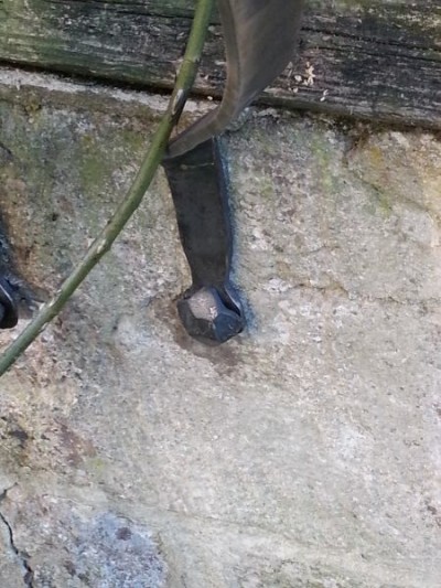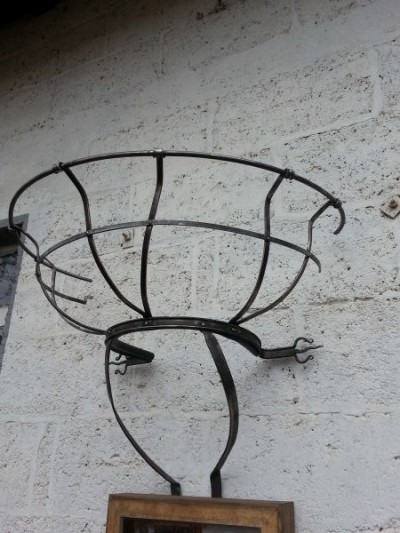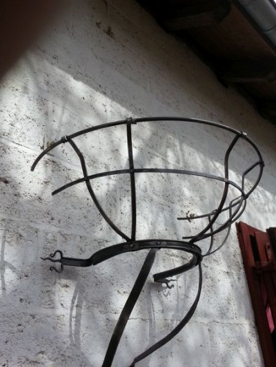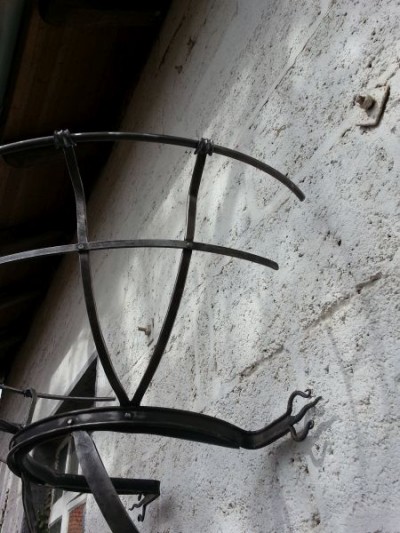 Alle Teile sind von Hand geschmiedet und durch Nieten verbunden. Der Hauptring besteht aus Hespeneisen, die Aufstrebenden Eisen sind aufgespalten und halten einen kleineren Ring (10×5) und ein Rundeisen in ausgeschmiedeten Fischschwänzen.