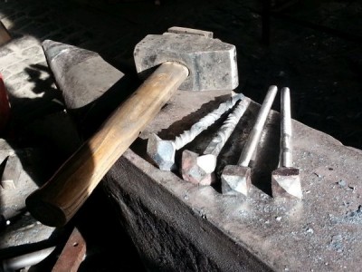 Interessant waren es die unteren Abstützungen zu schmieden. Diese sind von der Form her sehr komplex da sie in sich gebogen und gekröpft sind um auch die Form des Rosengitters aufzunehmen.