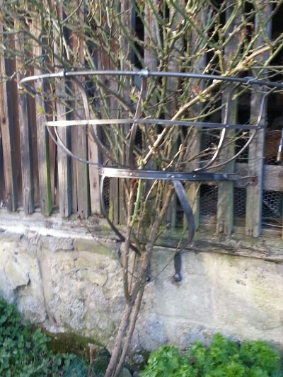 Ein neues Blumengitter ist fertig. Das Gitter soll eine Unterstützung für eine Stammrose sein. Die Rose hat einen sehr dünnen Stamm und steht an einer recht zugigigen Ecke und braucht von daher diese Unterstützung.